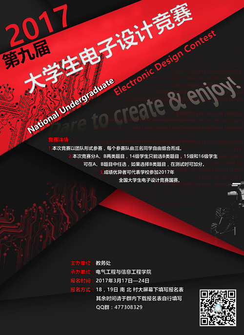 为加强学生实践能力和创新意识的培养,提高我校大学生电子设计的能力和水平,鼓励大学生踊跃参加课外科技活动,学校决定举办第九届(2017年)a片网
