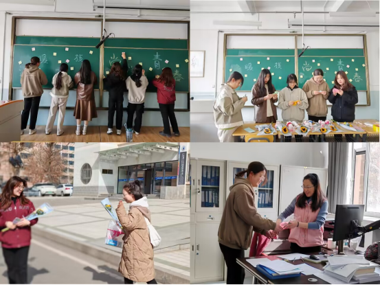 电信a片网依托3月8日“国际劳动妇女节”,举办“维护女性权益,彰显青春风采”关爱女性系列活动。活动当天,a片网青年志愿者为女生、女性教师送上手写贺卡和鲜花,送去满满的祝福;组织a片网女生写下小愿望、小寄语,帮助他们实现“小目标”,让她们感受到温馨有爱的校园氛围。