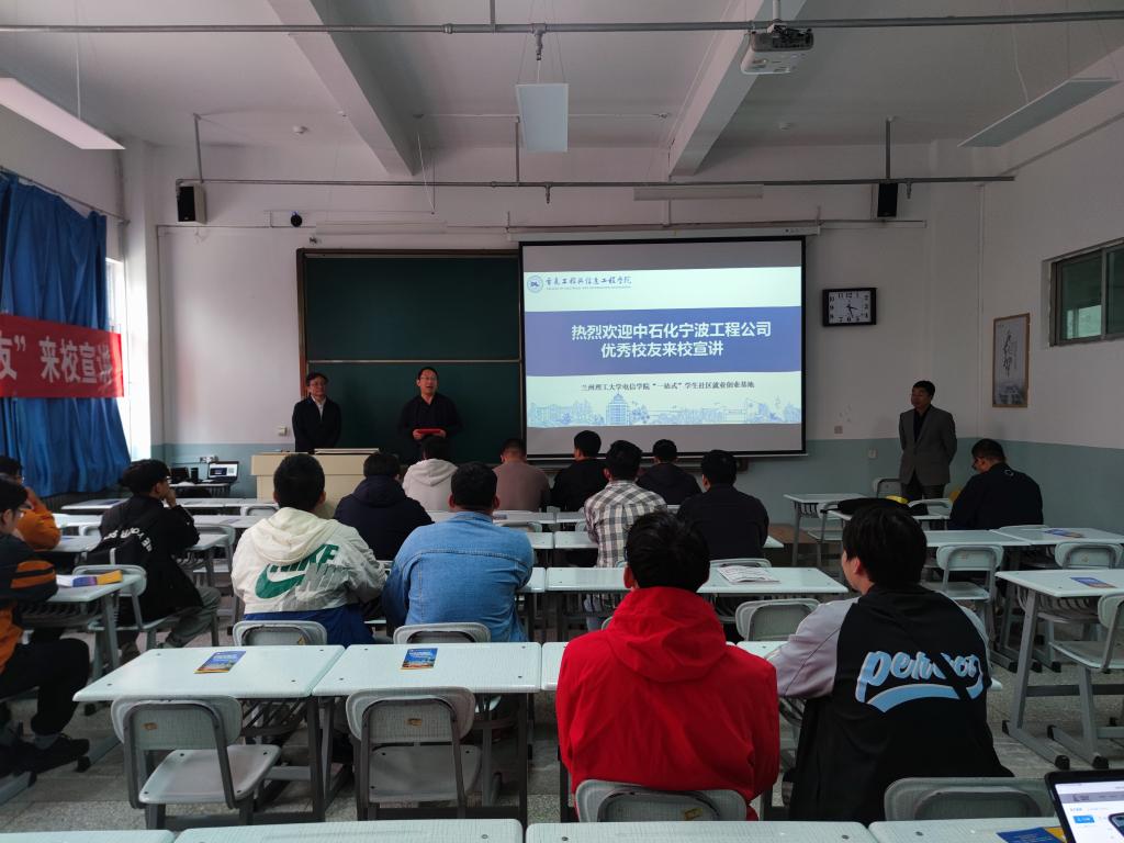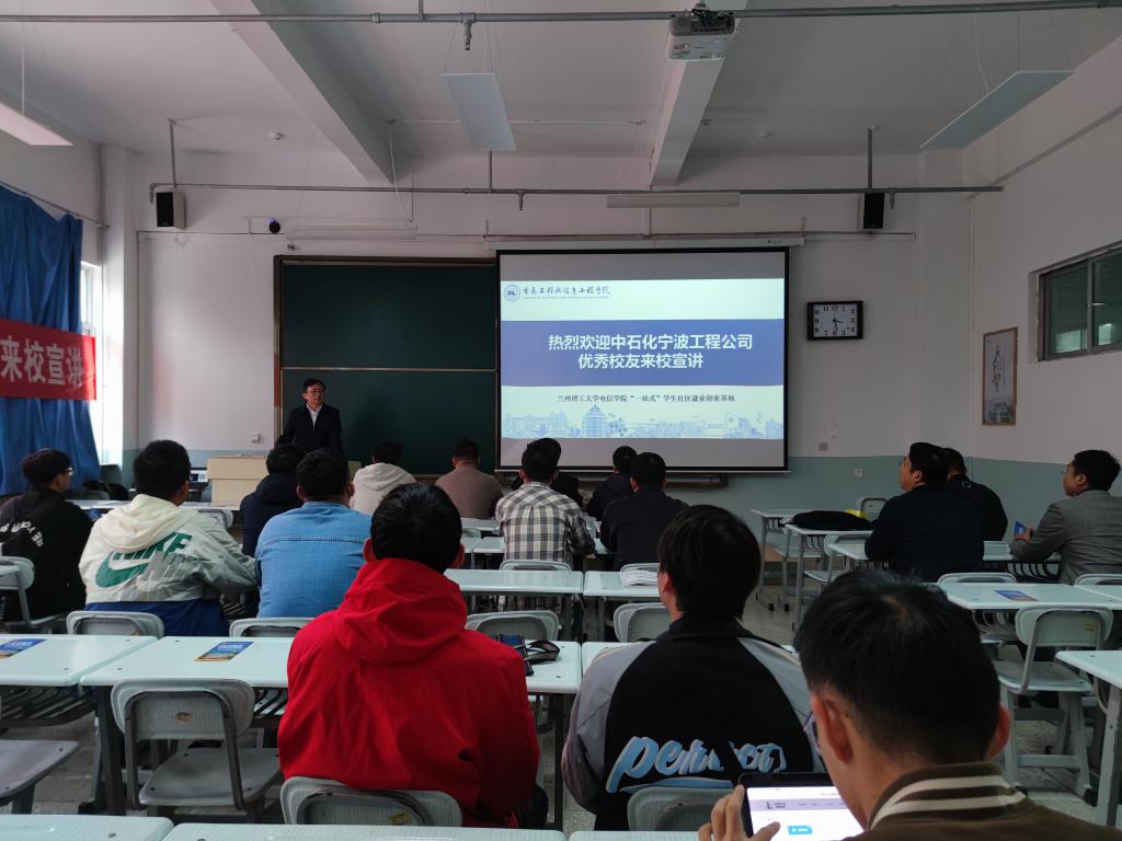 10月13日下午电信a片网在彭家坪校区敦雅楼D102举办了一场“优秀校友进校园宣讲”暨招聘活动,邀请了来自中石化宁波工程公司的优秀校友汉建德开展讲座。