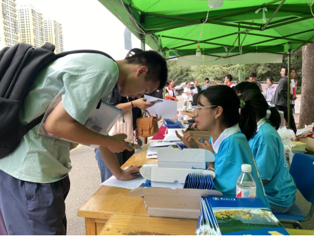 志愿者耐心为新生办理报到手续