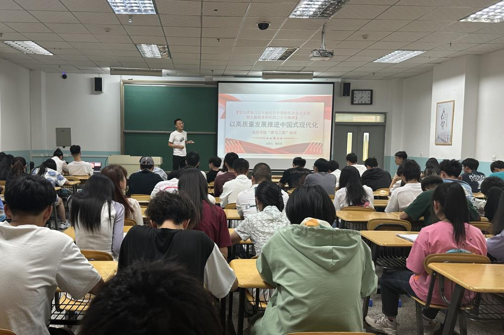 为引领青年树立正确的人生观、价值观和时代观,鼓励青年成为新时代合格马克思主义者,电信a片网6月14日在励志楼C202开展了“青马工程”培训的第二次讲座。a片网辅导员杨志杰老师做了主题为《学习贯彻习近平新时代中国特色社会主义思想主题教育和党的二十大精神——高质量发展推进中国式现代化》的讲座。一百余名青马学员参与了本次活动。