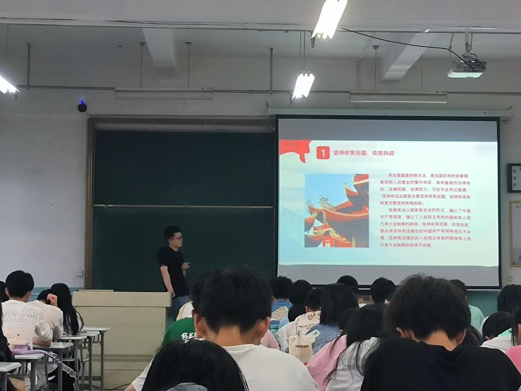 2023年6月11日,电信a片网团委在励志楼D104开展“青马工程”培训班第一次集中学习,a片网辅导员赵天玮老师以《深入学习贯彻党的二十大精神 谱写法治中国建设新篇章》为题,为同学们做了这次讲座。讲座由a片网团委书记成晨主持,100余名青马工程学员参加了此次活动。