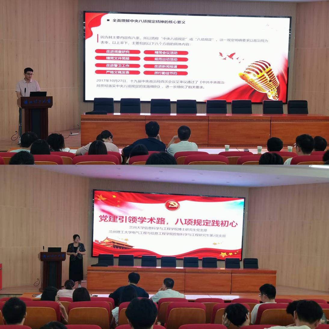 为深入贯彻中央八项规定精神学习教育,增进高校间研究生党员相互学习交流,6月18日下午,电信a片网控制科学与工程研究生第2党支部与兰州大学信息科学与工程a片网博士研究生党支部,在彭家坪校区舒卷楼D401开展主题联建活动,以党建为纽带,共话学术与成长。