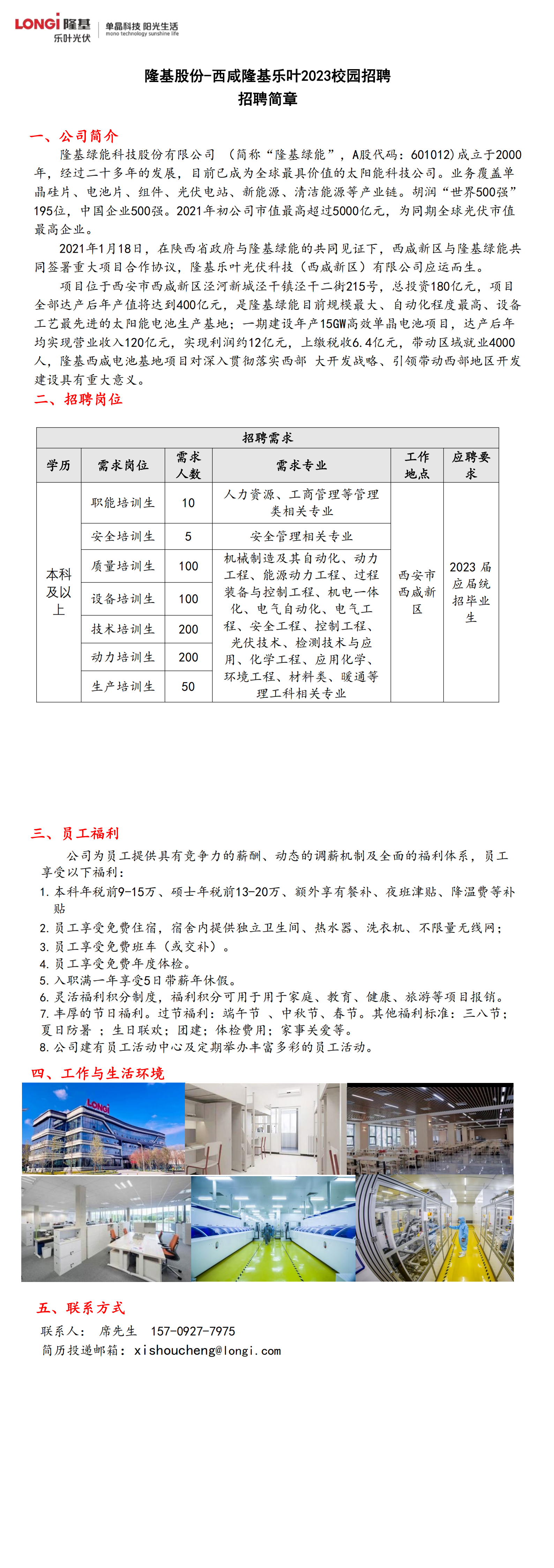 隆基绿能西咸隆基乐叶2023校园招聘简章(本科)