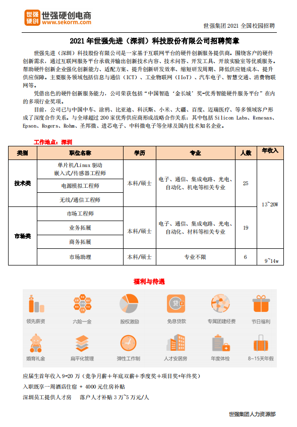 世强集团2021届校园招聘简章-春招
