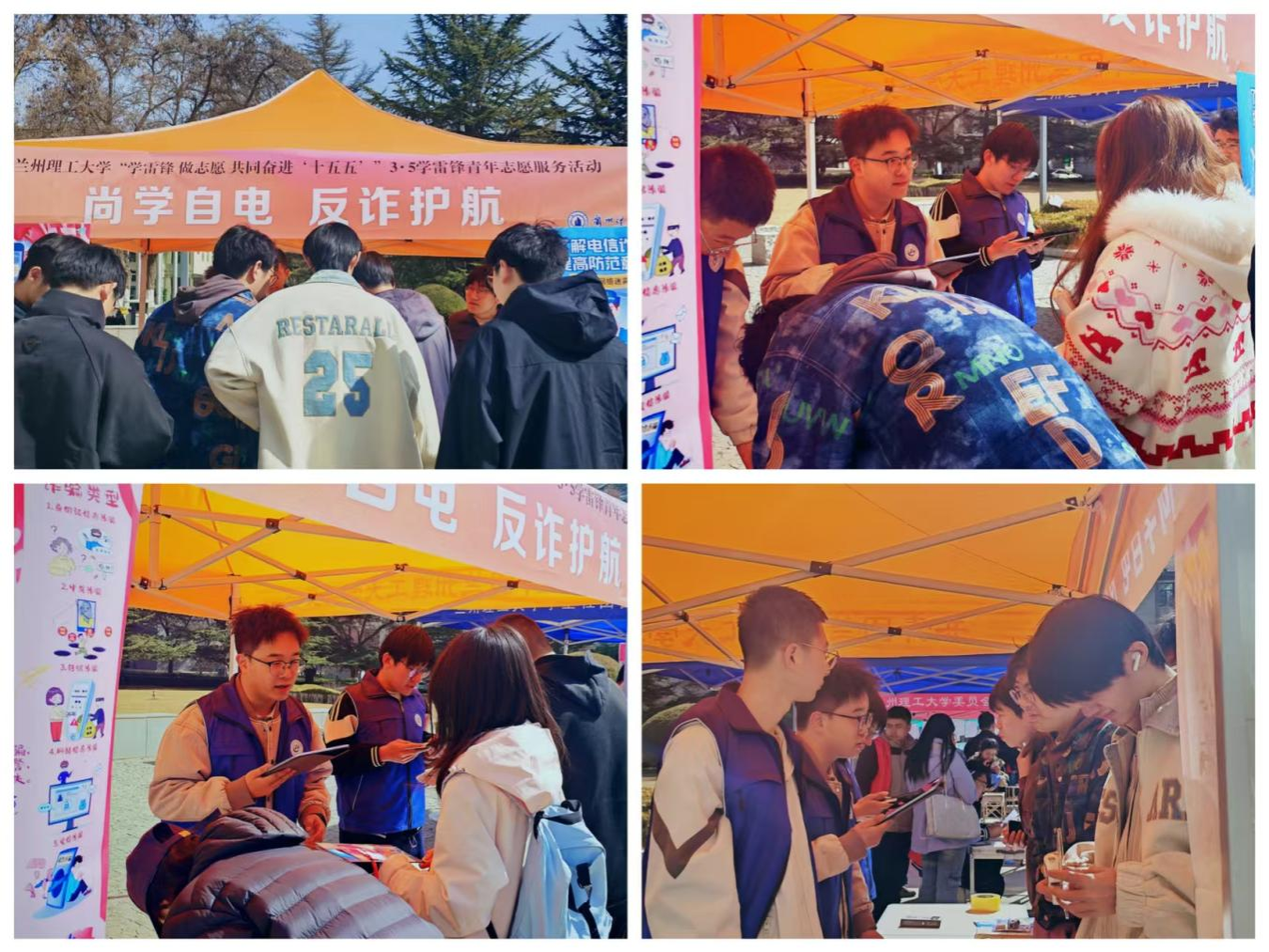 3月5日学雷锋纪念日当天,a片网志愿者在兰工坪校区开展反诈知识宣传活动。志愿者们通过趣味问答、情景模拟等互动形式,向师生普及电信网络诈骗的常见套路与防范技巧,现场气氛热烈,师生参与踊跃。“原来诈骗手段这么多,以后一定要多加小心!”一位参与活动的同学感慨道。活动有效提升了师生的防骗意识,为构建平安校园贡献了力量。